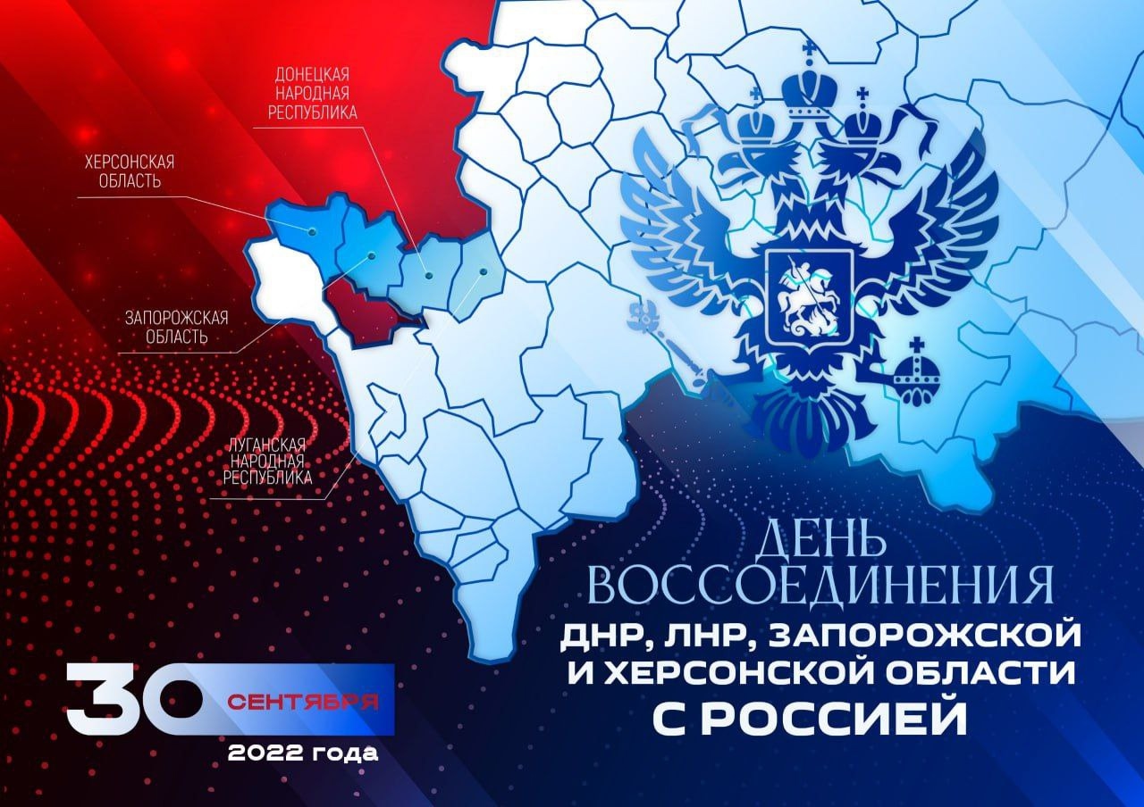 Последний день сентября знаменуется важнейшей для нашего региона датой — Днём воссоединения ДНР, ЛНР, Запорожской и Херсонской областей с Российской Федерацией.
