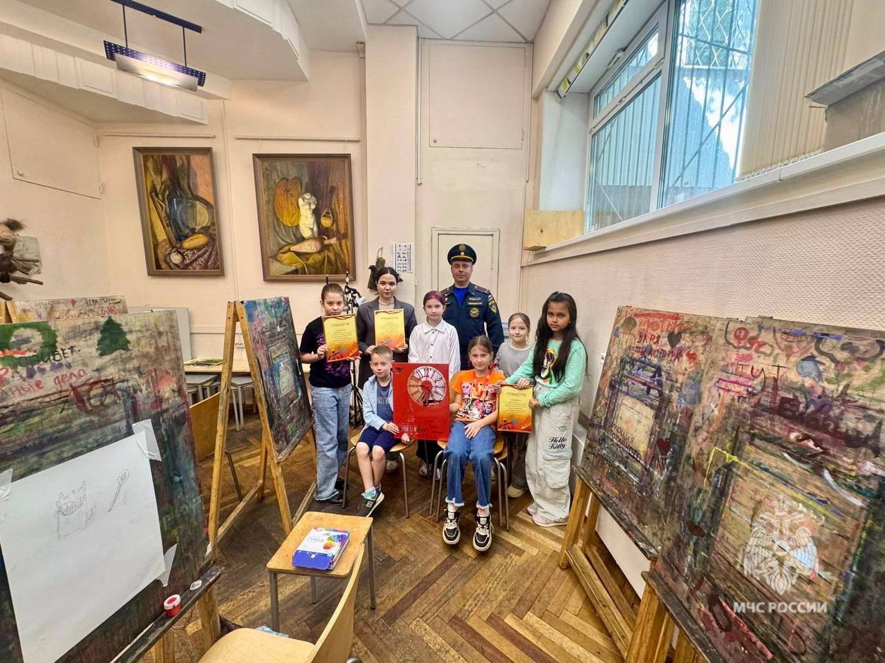 В рамках предстоящего празднования, на базе Государственного бюджетного учреждения дополнительного образования города Москвы «Детская художественная школа им. М.А. Врубеля» сотрудники 1 регионального отдела надзорной деятельности и профилактической работы Управления по ВАО Главного управления МЧС России по г. Москве провели конкурс рисунков на темы: «Пожарная охрана глазами детей», «Пожарная каланча в Сокольниках» и «Работа пожарных».
