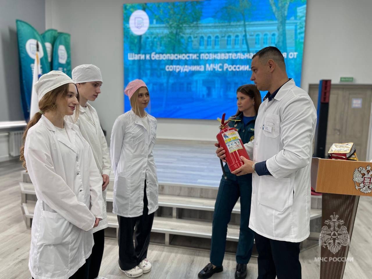 Студентам были продемонстрированы первичные средства пожаротушения и разъяснены принципы эффективной борьбы с огнем на начальной стадии, а также была проведена демонстрация средств защиты органов дыхания и их применение.