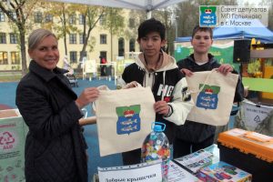 После сортировки вторичного сырья все участники акции получали от муниципального депутата Ольги Антиповой подарки – экологические сумки с символикой района.