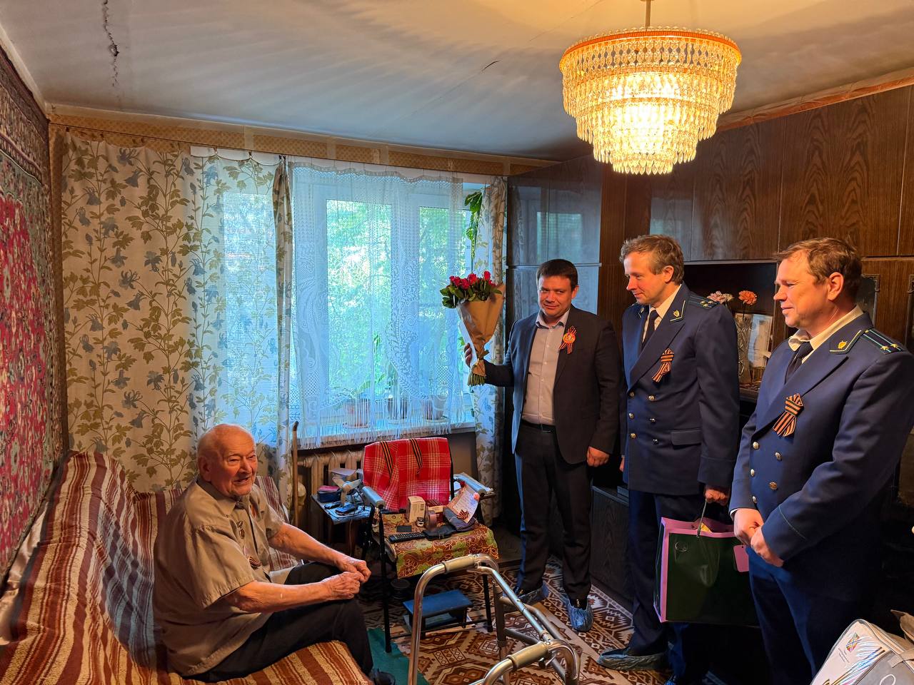 Преображенский межрайонный прокурор Ситников В.А., первый заместитель Преображенского межрайонного прокурора Жуланов В.М. совместно с главой Управы района Преображенское, главой муниципального округа Преображенского г. Москвы в преддверии Дня Победы поздравили ветерана Великой Отечественной Войны Станислава Григорьевича Кобякова
