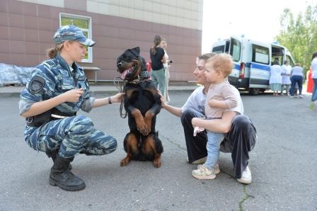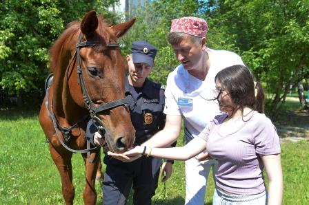 Полицейские-кавалеристы дали ребятам возможность погладить коней и поездить на них верхом в поводу. Кинологи продемонстрировали выполнение элементов дрессуры служебных собак.