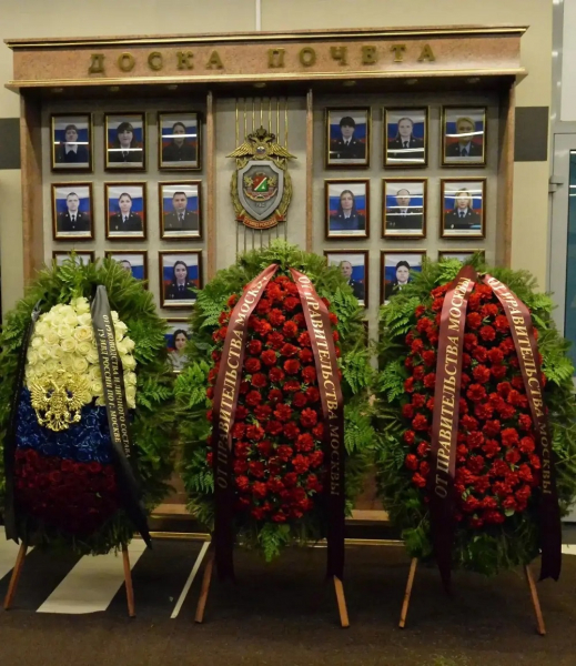 Сегодня на территории Управления внутренних дел по Южному административному округу г. Москвы проходит траурная церемония прощания с инспекторами отдельного батальона ДПС ГИБДД УВД по Южному округу ГУ МВД России по г. Москве Ильей Климановым и Максимом Горбуновым, погибшими при исполнении служебного долга 24 декабря 2025 года.