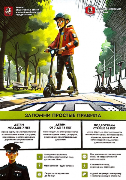 Сотрудники Госавтоинспекции Москвы напоминают участникам дорожного движения о правилах езды на электросамокатах