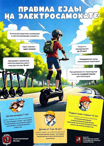Сотрудники Госавтоинспекции Москвы напоминают участникам дорожного движения о правилах езды на электросамокатах