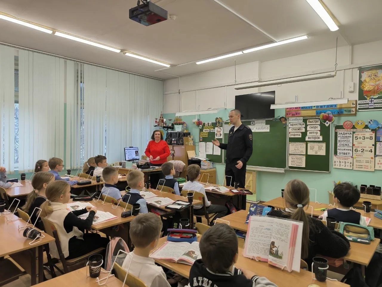 Сотрудник Отдельного батальона ДПС Госавтоинспекции УВД по Восточному административному округу Александр Наумкин провел профилактическое мероприятие для учащихся школы «Новокосино».